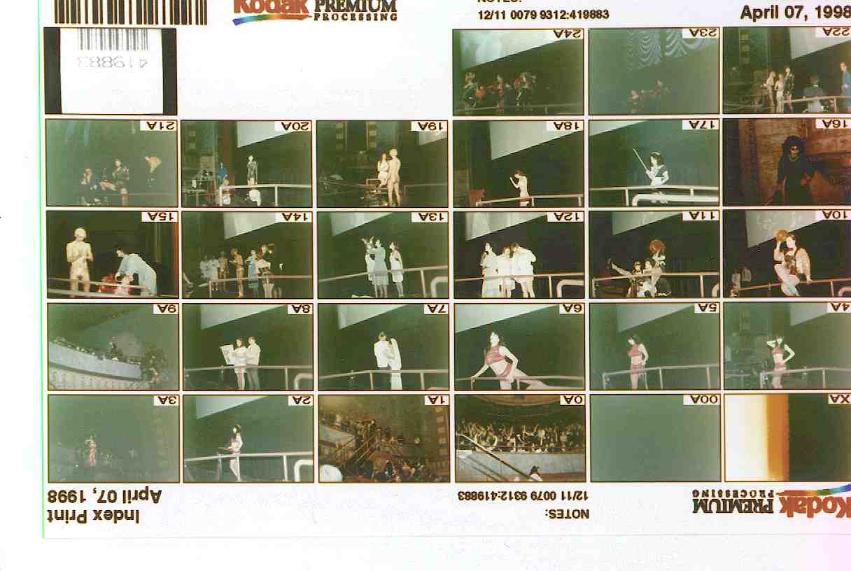Below are links to the contact sheets of 4 rolls of film I shot at the convention. Look through them and decide which photos you want. Mail or Email me with your selection (Be sure to list both the roll # and the Image #). Reprints are $1 each (4"x6" standard Kodak print) plus $1 per order Shipping & Handling charge.